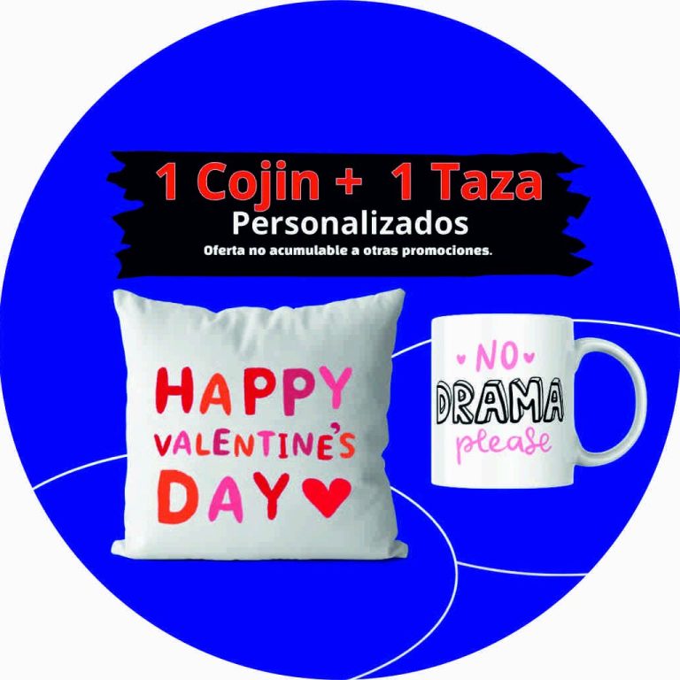 tenemos una oferta especial de un pack de 1 cojín + 1 tazas personalizados por 30e